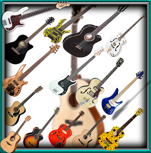 Растровые клип-арты - Модные гитары 25 png | 2423x1683; 3118х2221 | 300 dpi | 46 Mb |