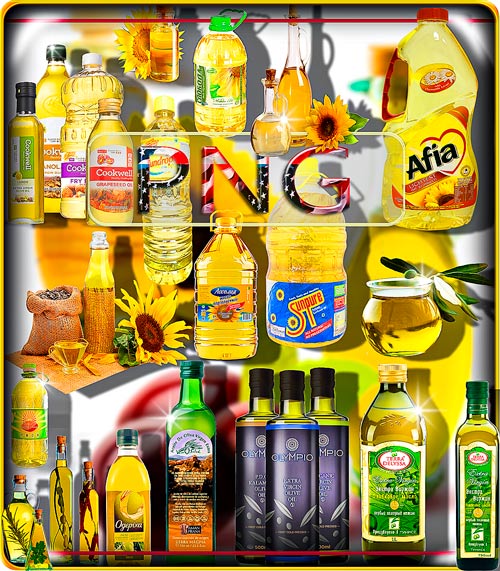 Клип-арты для фотошопа - Подсолнечное и оливковое масло 85 png | 2423x1683; 3118х2221 | 300 dpi | 44 Mb |