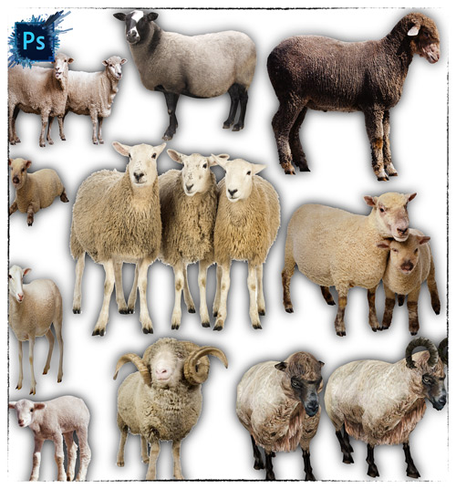 Клип-арты для фотошопа на прозрачном фоне - Овцы 21 png | 2423x1683; 3118х2221 | 300 dpi | 88 Mb |