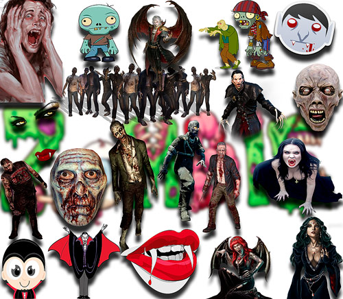 Клипарты для фотошопа на прозрачном фоне - Зомби и вампиры 147 png | 2423x1683; 3118х2221 | 300 dpi | 54 Mb |