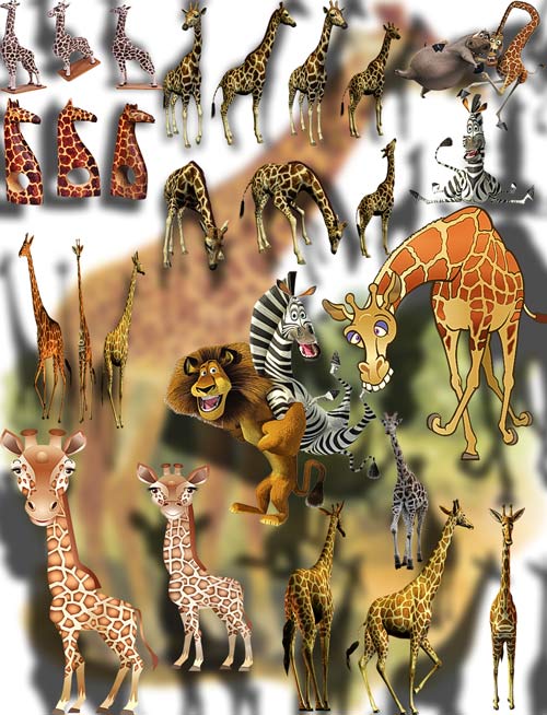 Клип-арты для фотошопа - Веселые жирафы 90 png | 2423x1683; 3118х2221 | 300 dpi | 101 Mb |
