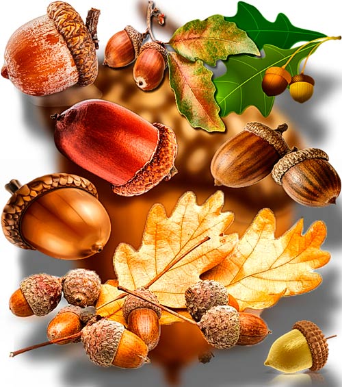Клип-арты для фотошопа на прозрачном фоне - Дубовые желуди 28 png | 2423x1683; 3118х2221 | 300 dpi | 61 Mb |