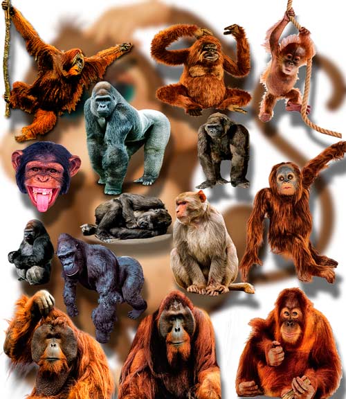 Клипарты png без фона - Индивидуумы семейства обезъян 55 png | 2423x1683; 3118х2221 | 300 dpi | 235 Mb |