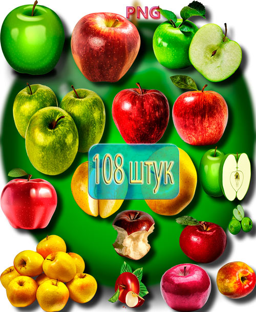 Коллекция Png клипартов - Яблоки разных сортов 108 png | 2423x1683; 3118х2221 | 300 dpi | 495 Mb |