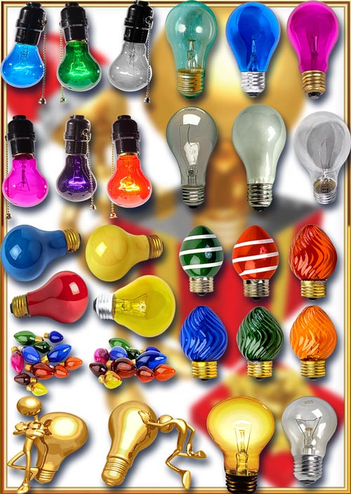 Клипарты картинки - Лампы накаливания 100 png | 2423x1683; 3118х2221 | 300 dpi | 60 Mb |