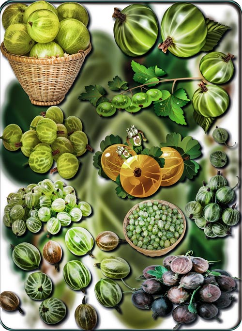 Растровые клип-арты - Крыжовник 46 png | 2423x1683; 3118х2221 | 300 dpi | 156 Mb |