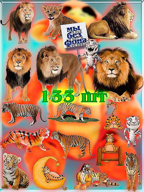 Растровые клип-арты - Львы и тигры 133 png | 2423x1683; 3118х2221 | 300 dpi | 288 Mb |