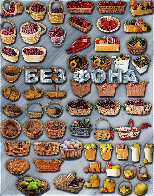 Клипарты для фотошопа на прозрачном фоне - Кошелки и корзинки 413 png | 2423x1683; 3118х2221 | 300 dpi | 1,1 Gb |