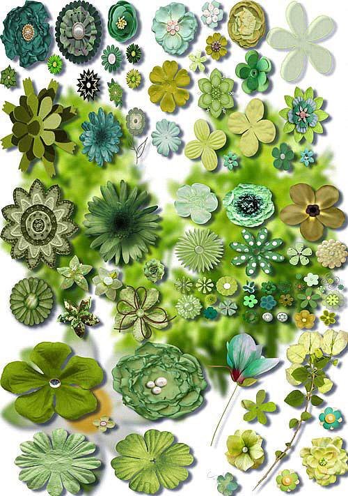 Клипарты на прозрачном фоне - Зеленые цветы 137 png | 2423x1683; 3118х2221 | 300 dpi | 112 Mb |