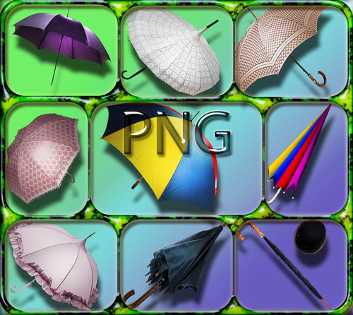 Клипарты png - Зонты различных моделей 100 png | 2423x1683; 3118х2221 | 300 dpi | 193 Mb |