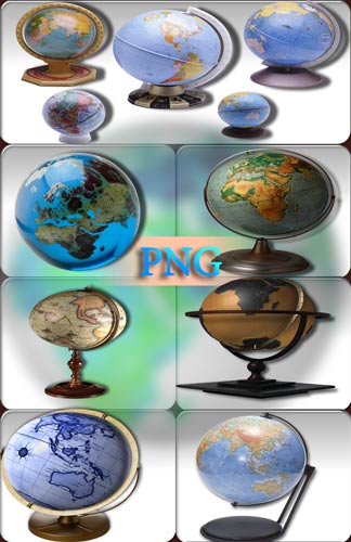 Клипарты для фотошопа - Настольные глобусы 54 png | 2423x1683; 3118х2221 | 300 dpi | 170 Mb |