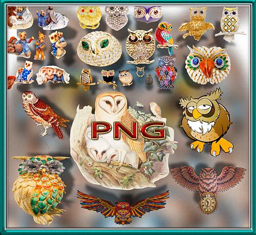 Клипарты для фотошопа - Ночные совы 51 png | 2423x1683; 3118х2221 | 300 dpi | 143 Mb |